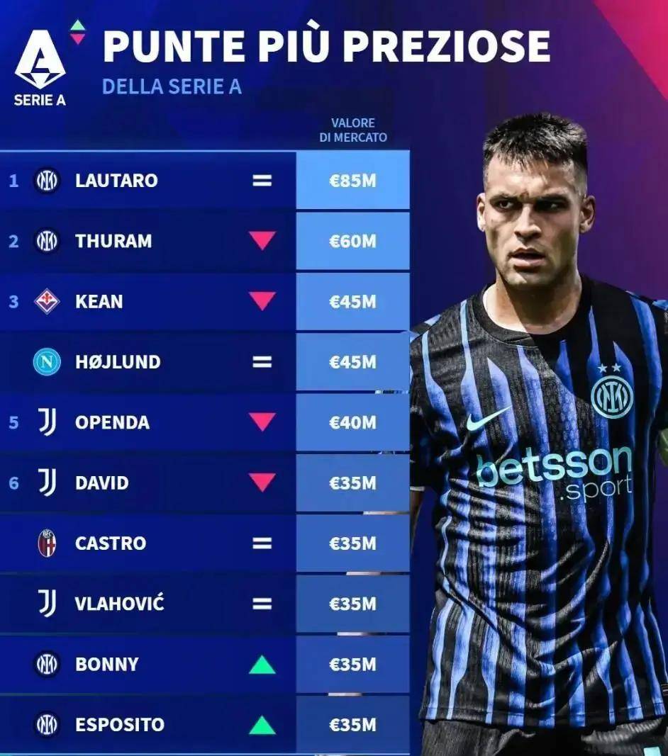 意甲最新球队身价榜出来了。国际米兰总价值7.43亿欧元,排第一。这多亏核心球员稳定发挥。劳塔罗个人价值8500万欧元,很高。他本赛季出场39次。进了20球,助攻4次。这帮助球队领跑积分榜。他是射手榜第一。齐沃说,劳塔罗的作用很清楚。他的数据让球队领先。
